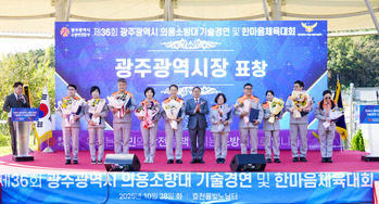 광주광역시 소방안전본부는 28일 남구 효천물빛노닐터 운동장에서 ‘제36회 의용소방대 소방기술경연 및 한마음 체육행사’를 개최했다.이날 행사는 의용소방대원의 소방기술 숙련도 향상과 봉사정신 함양, 소방가족 간 화합과 단결을 강화하기 위한 자리로 마련됐다.행사에는 의용소방