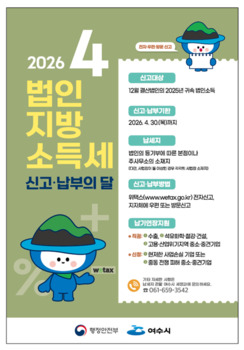 여수시, 4월 한 달 ‘법인지방소득세 집중 신고·납부 기간’ 운영