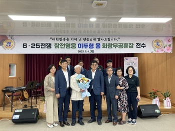 전남 함평군이 나라를 위해 헌신한 6·25 참전 용사의 공로를 기리며 참전유공자에 대한 예우와 보훈의 가치를 되새겼다.함평군은 7일 “6·25 전쟁 참전 영웅 이두형 상사(97세)가 지난 4일 학교면 학나래문화센터에서 열린 무공수훈훈장 전수식에서 화랑무공훈장을 수훈했다
