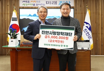 안계현 진안군 안전환경국장은 25일 진안사랑장학재단(이사장 전춘성)에 장학금 500만 원을 기탁했다.안 국장은 2017년부터 꾸준히 진안사랑장학재단에 일정 금액을 장학금으로 기탁하고 있으며, 올해도 지난 1월에 이어 두 번째 장학금 기탁으로 총 1000만 원이 넘는 금