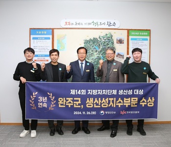 완주군, ‘지자체 생산성대상’ 3년 연속 수상