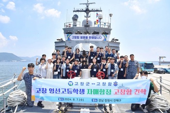 고창군은 관내 고교생 30여명이 경남 창원시를 방문해 자매결연기관 해군함정인 고창함을 견학했다고 8일 밝혔다.고창군이 영선고등학교 학생들을 대상으로 고창군의 자매결연기관이자 고창의 지역명으로 탄생한 고창함을 방문하여 자매결연도시 바로알기 일환으로 실시한 프로그램이다.&