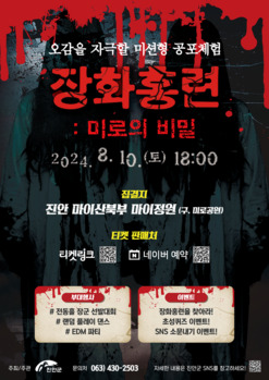 한여름 밤에 펼쳐지는 숨 막히는 생존 게임, 전동흘 장군이 되어 장화·홍련 자매의 원혼을 풀어주오!진안군은 오는 10일 마이산 북부 마이정원(구 미로공원) 일원에서 열리는 '납량특집, 장화홍련: 미로의 비밀' 좀비 레이스에 대비해 종합 안전 대책 마련 및 점검 등 사전