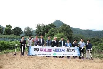 무주군은 지난 8일 올해 후백제 문화유산 연구사업으로 추진 예정인 '주계고성(朱溪古城) 시굴조사'를 위한 개토제를 무주읍 대차리 일원에서 지냈다. 이날 개토제는 시굴조사 이유와 과정 등을 공유하고 무사고를 기원하기 위해 추진한 것으로, 황인홍 무주군수