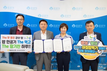 군산시와 농협중앙회 군산시지부(지부장 원천연)는 8일 시민들의 균형된 식생활 습관으로 건강을 증진하고 군산 쌀 소비 촉진을 도모하고자 ‘군산시민 아침밥 먹기 운동’을 위한 업무협약을 체결했다.이날 협약을 통해 양 기관은 쌀값 하락과 1인당 쌀 소비량 감소 등으