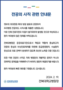 전북대학병원 전공의 업무개시명령… "해고 여부는 정부 방침 따라 대응 예정"