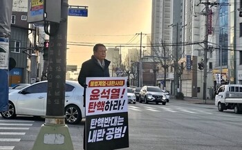 정헌율 익산시장은 '윤석열 탄핵'을 촉구하는 1인 피켓 시위에 나섰다.정 시장은 지난 12일 오전 8시30분 익산상공회의소사거리에서 '불법 계엄‧내란 사태 윤석열을 탄핵하라! 탄핵 반대는 내란 공범!'이라는 문구를 쓴 피켓을 들고 약 30분 동안 출근길 시위를 벌였다.