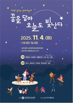 장애·비장애 학생들이 함께 다채로운 공연을 선보이는 문화예술의 장이 열린다.광주시교육청(교육감 이정선)은 오는 11월4일 오후 2시 학생교육문화회관에서 특수교육 대상 학생들이 펼치는 ‘제9회 꿈꾸는 문화예술제’를 개최한다.‘꿈꾸는 문화예술제’는 특수교육 대상 학생들이
