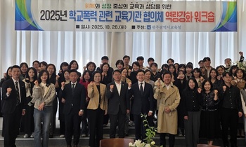 광주시교육청(교육감 이정선)은 28일 남구 한 컨벤션센터에서 학교폭력 관련 교육기관 대상 역량 강화 워크숍을 실시했다.워크숍은 학교폭력 관련 학생의 빠른 일상 회복과 평화로운 학교문화 조성을 위한 지역사회 지원체계 구축을 위해 동·서부·광산 Wee센터, 돈보스코학교,