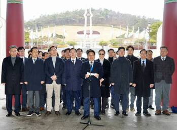 ‘전남광주통합특별시 설치를 위한 특별법’이 지난 1일 밤 국회 본회의를 통과하면서 광주전남의 통합이 본궤도에 올랐다.강기정 시장 등 광주광역시 간부들과 공공기관장들은 2일 북구 국립5·18민주묘지를 참배한 뒤, 민주의문 앞에서 통합특별법 국회 통과 환영 입장문을 발표했