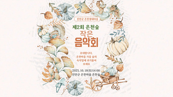 전북 진안군은 오는 18일 오후 2~4시까지 은천생태마을 숲에서 ‘두 번째 은천숲 작은 음악회’가 열린다고 밝혔다. 이번 음악회는 은천생태마을운영위원회가 주최하고 진안군 후원으로 지난해에 이어 2회를 맞이한다. 위원회는 음악회에서 트럼펫·오카리나·색소폰 연주와