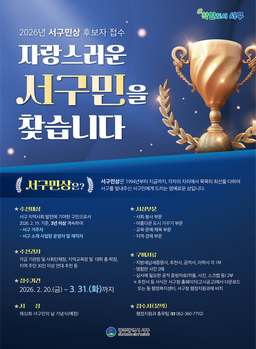 광주광역시 서구(구청장 김이강)는 지역사회 발전에 헌신해 온 주민들을 발굴해 ‘착한영웅’으로 선정하는 ‘제32회 서구민상’ 수상자를 찾는다.시상 부문은 △사회·봉사 △아름다운 도시 가꾸기 △교육·문예·체육 △지역·경제 총 4개 부문이며 부문별 각 1명씩 선정한다. 동일