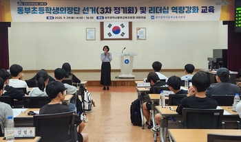 광주시동부교육지원청(이하 광주동부교육지원청)은 29일 본관 대회의실에서 개최된 ‘2025학년도 2학기 동부초등학생의장단 선거(3차 정기회)’에서 광주교육대학교부설초등학교 오아란(6학년) 학생이 의장으로 선출됐다고 밝혔다.이번 선거에는 3명의 후보가 출마해 온라인 선거운
