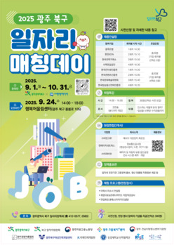 광주 북구, ‘2025 일자리 매칭데이’ 개최광주 북구(구청장 문인)는 오는 24일 오후 2시 북구 행복어울림센터에서 구인기업과 구직자를 한자리에 모아 채용과 취업을 연결하는 ‘일자리 매칭데이’를 운영한다.‘일자리 매칭데이’는 구직자들에게는 취업 역량 강화와 우수 기업 채용의 기회를, 참여 기업에는 우수 인재 발 2025-09-22 이성호 기자