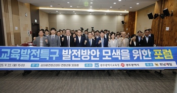 광주시교육청 '교육발전특구 발전방안 모색 포럼' 개최광주시교육청(교육감 이정선)이 22일 광주시와 함께 김대중컨벤션센터에서 ‘교육발전특구 발전방안 모색을 위한 포럼’을 개최했다.이번 포럼은 ‘교육발전특구 시범지역’ 1차년도 운영성과를 점검하고, 인재양성-취·창업-정주여건 정책이 안착될 수 있는 방안을 모색하기 위해 마련 2025-09-22 이성호 기자
