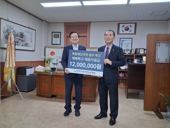 광주 북구, 한국지방재정공제회로부터 재해복구 지원금 1200만원 전달받아광주시 북구(구청장 문인)는 지난 8일 한국지방재정공제회(이사장 정선용)로부터 특별재난지역 재해복구 재정지원금 1200만 원을 전달받았다고 15일 밝혔다.이번 지원은 기록적인 집중호우로 막대한 피해를 입고 특별재난지역으로 선포된 북구의 조속한 피해 복구를 돕기 위해 마 2025-09-15 이성호 기자