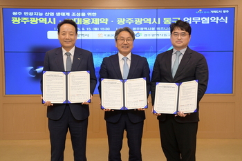 광주시-대웅제약, AI헬스케어 신산업 이끈다광주시(시장 강기정)는 15일 시청 비즈니스룸에서 ㈜대웅제약(대표이사 이창재), 광주 동구(청장 임택)와 함께 ‘광주시 인공지능산업 생태계 조성을 위한 업무협약’을 체결했다.이번 협약은 광주 인공지능(AI) 생태계를 기반으로 디지털 헬스케어 분야의 혁신 성장을 촉진하고 2025-09-15 이성호 기자