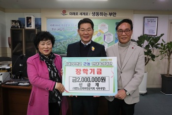 신금재 대한노인회 부안지회 사무국장은 최근 부안군 근농인재육성재단에 지역인재 육성을 위한 장학금 200만원을 기탁했다.신재금 사무국장은 부안군청을 방문해 근농인재육성재단 이사장을 맡고 있는 권익현 군수에게 “어려운 학생을 위해 써 달라”며 장학금을 기부했다.신금재 사무